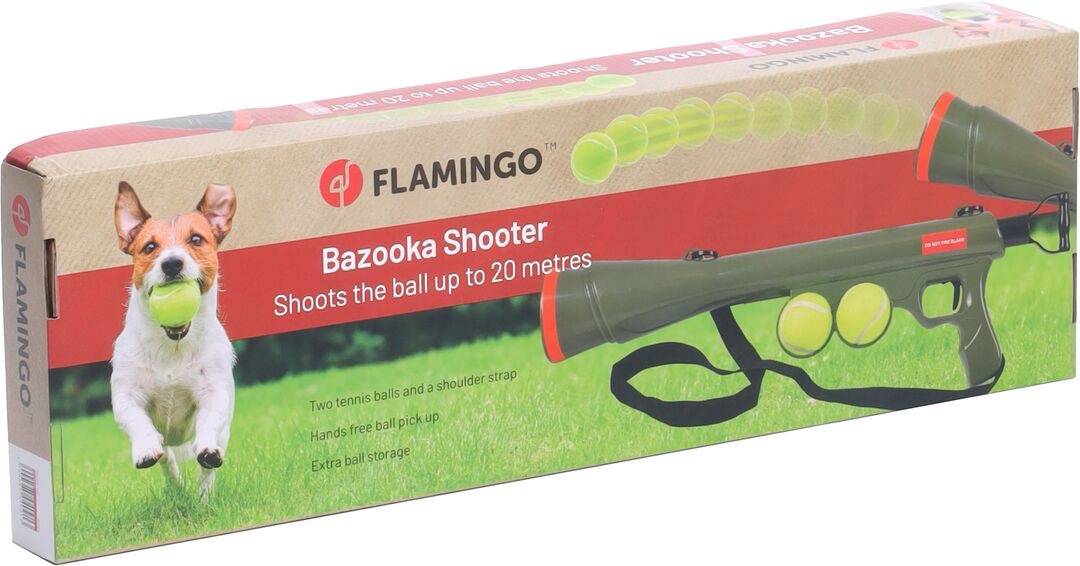 Est-ce que votre chien est une vraie pile électrique ? Pas de soucis ! Avec le BazooK-9, il/elle peut courir et jouer à son aise. Le Bazooka Shooter garantit des heures de plaisir de jeu. Offrez à votre chien le temps de sa vie et améliorez le lancer de balle à un niveau supérieur !